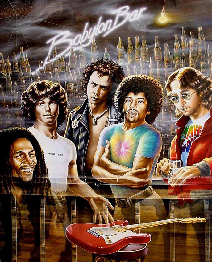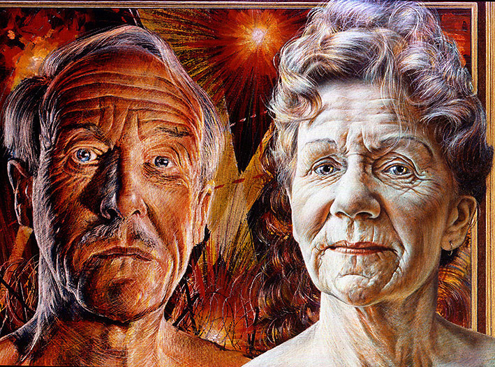 A selection of human depictions, some painted, some airbrushed, some illustrated, some photoshopped and some retouched photos.