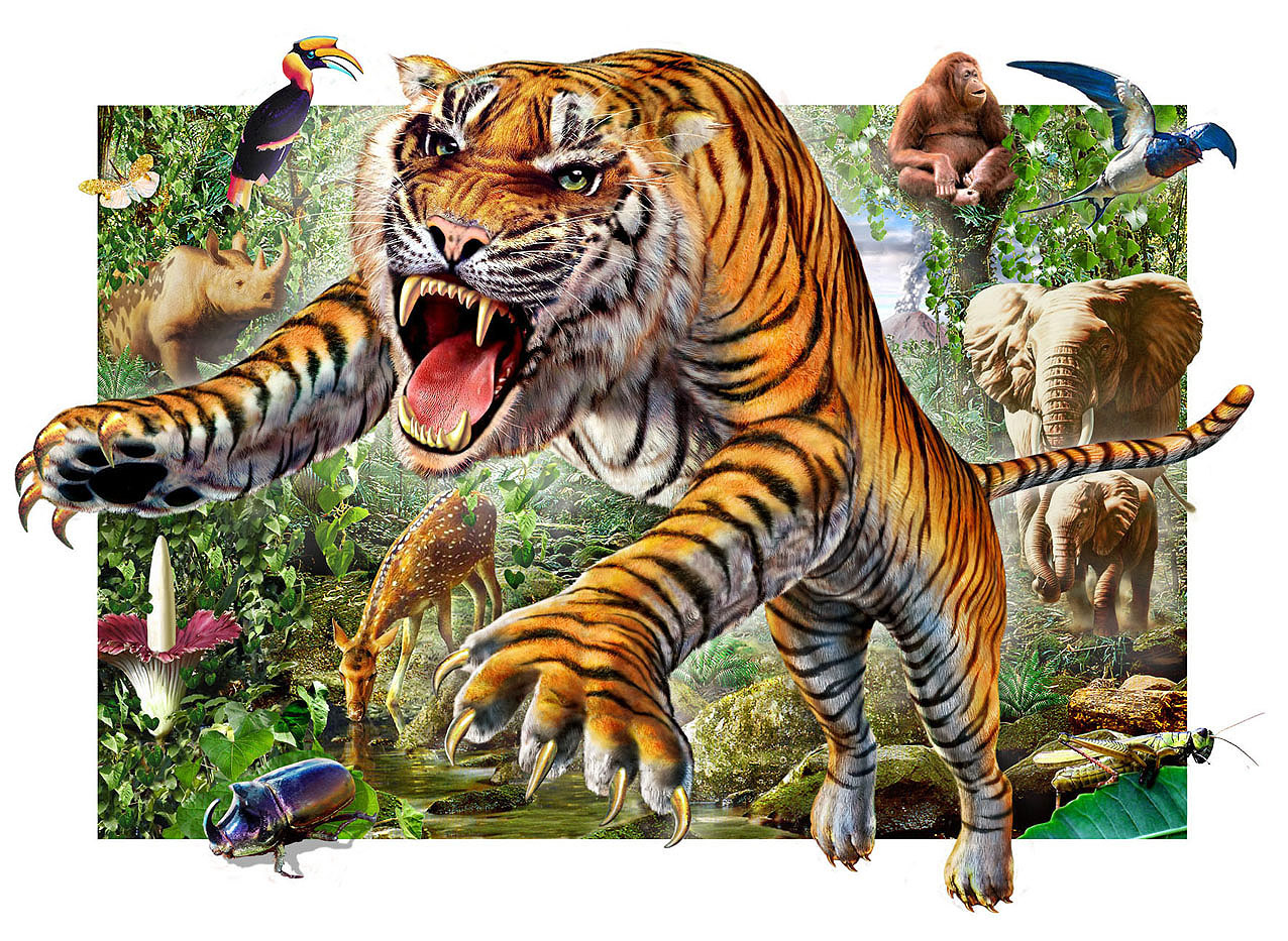 A selection of wildlife illustrations for a variety of clients including book illustrations and jigsaw puzzles including the massive 2 metre by 6 metre jungle panorama created for the biggest jigsaw puzzle in the world.